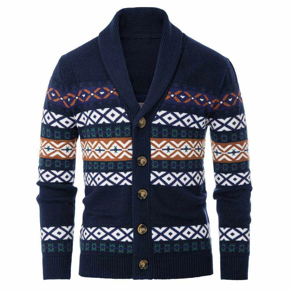 A preppy, casual staple to elevate the daily winter pursuit. Beautifully knitted from the finest wool blend, this shawl cardigan boasts a button-up front and winter-inspired motifs that pair easily with your casual separates.Â