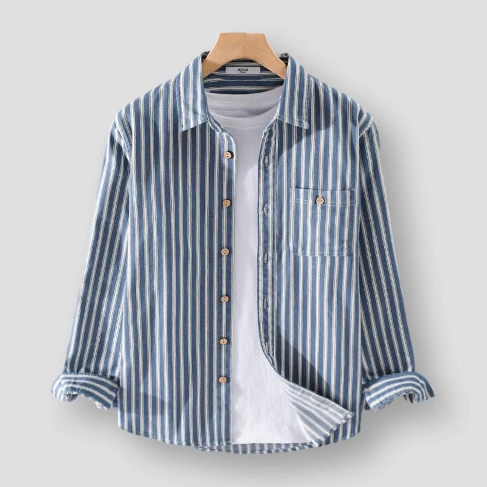 Contrasting stripes grid this handsome shirt cut from pure cotton for unmatched comfort. Designed for the urban gentleman, it features a laid-back fit that’s always casual and looks great buttoned up or opened and layered.Â