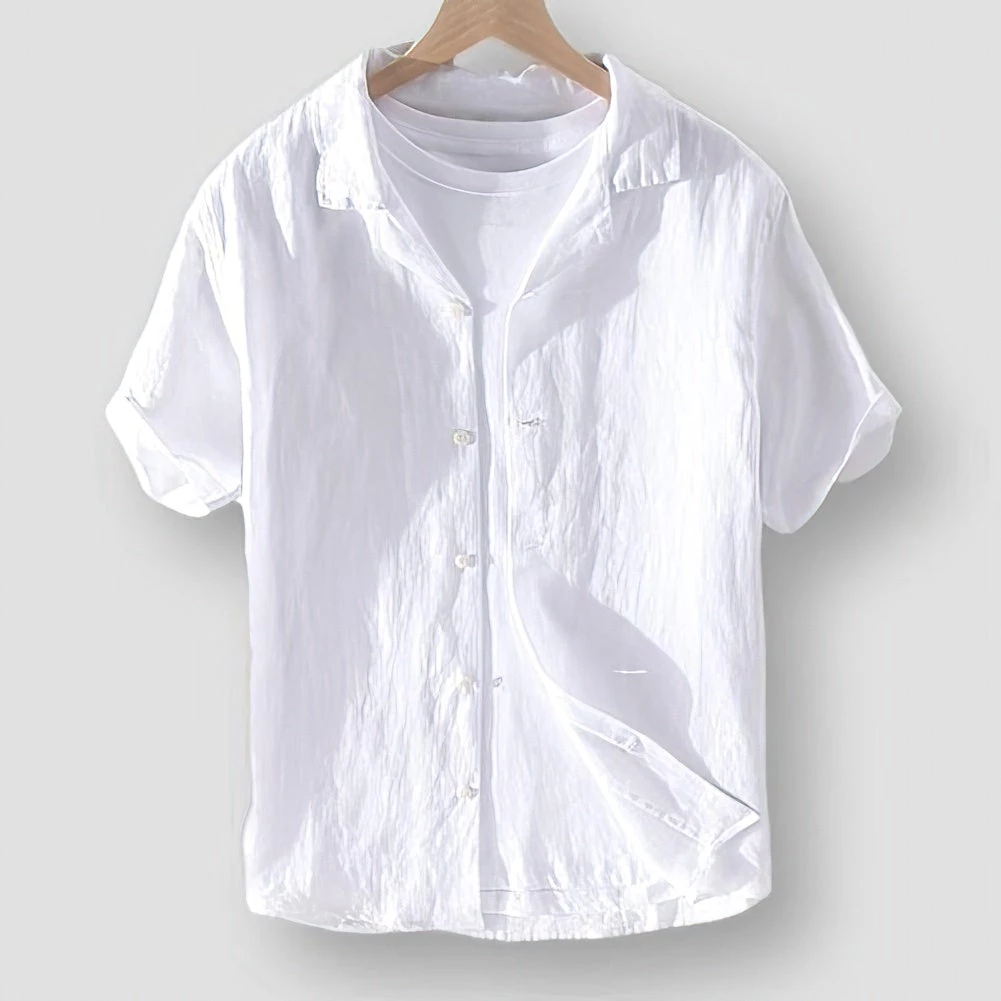 Soft and crisp linen delivers unparalleled comfort to this charming summer shirt. The relaxed fit is adorned with a button-up front and looks best left untucked. Style with linen shorts and sandals for a casual seaside dinner or a sunset walk on the beach.