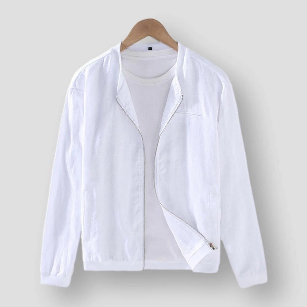 Preppy meets laid-back in this gorgeous linen blend jacket. Designed for superior comfort and style, it boasts a classic silhouette with a zipper front and versatile hues that blend with your entire off-duty line-up.