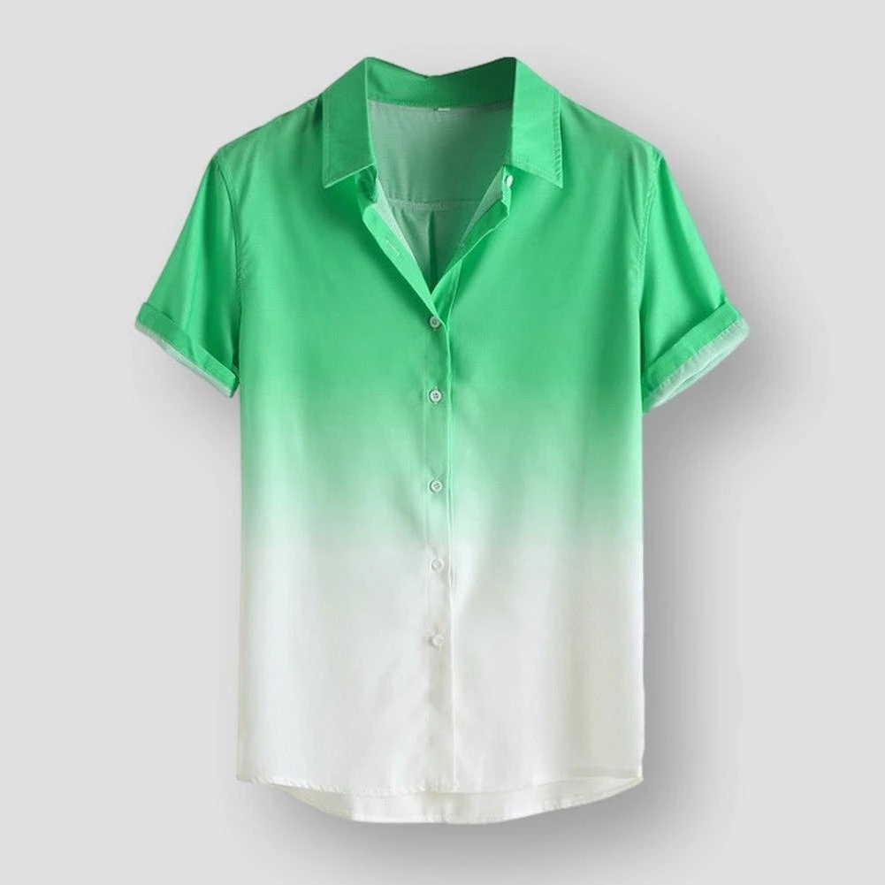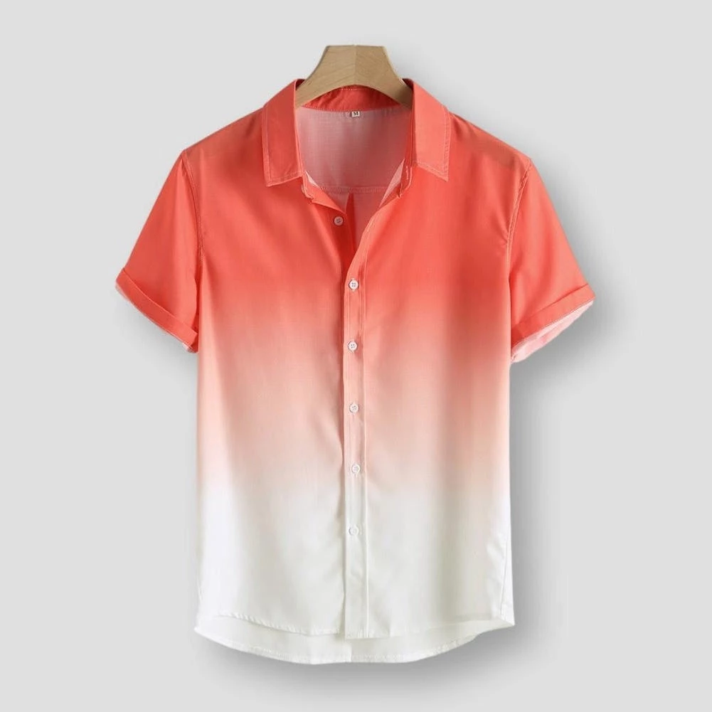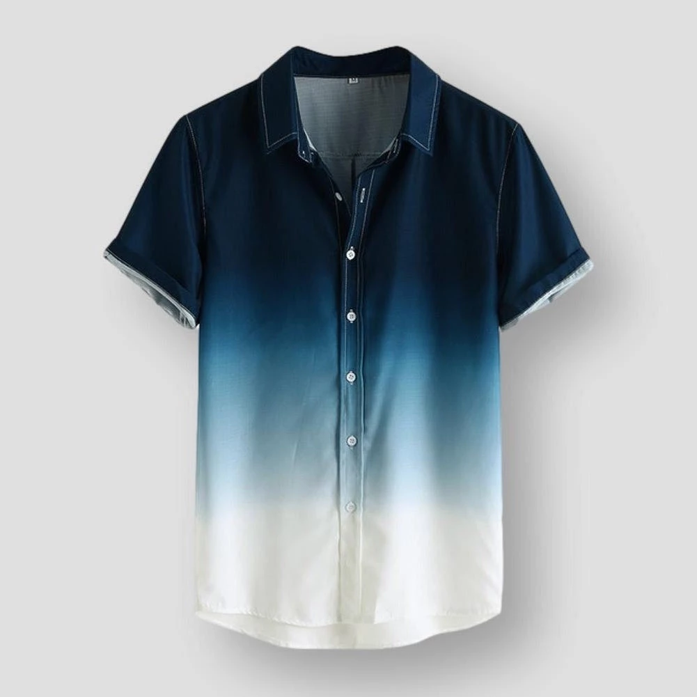 A breezy lightweight blend invites cool breezes to this stylish summer shirt. Cut in a relaxed fit, it boasts a button front and a gradient print in vibrant hues that will elevate your vacation portfolio.