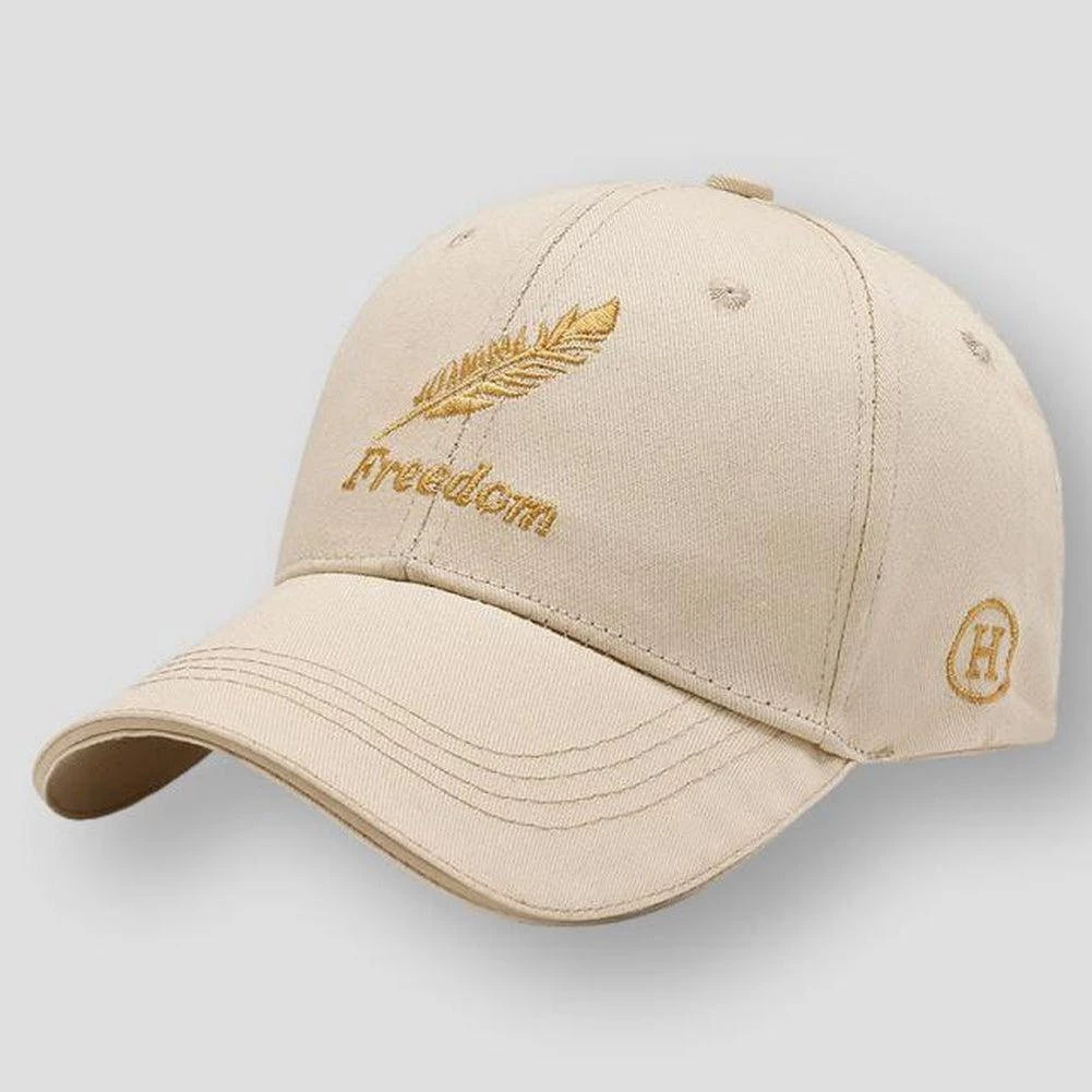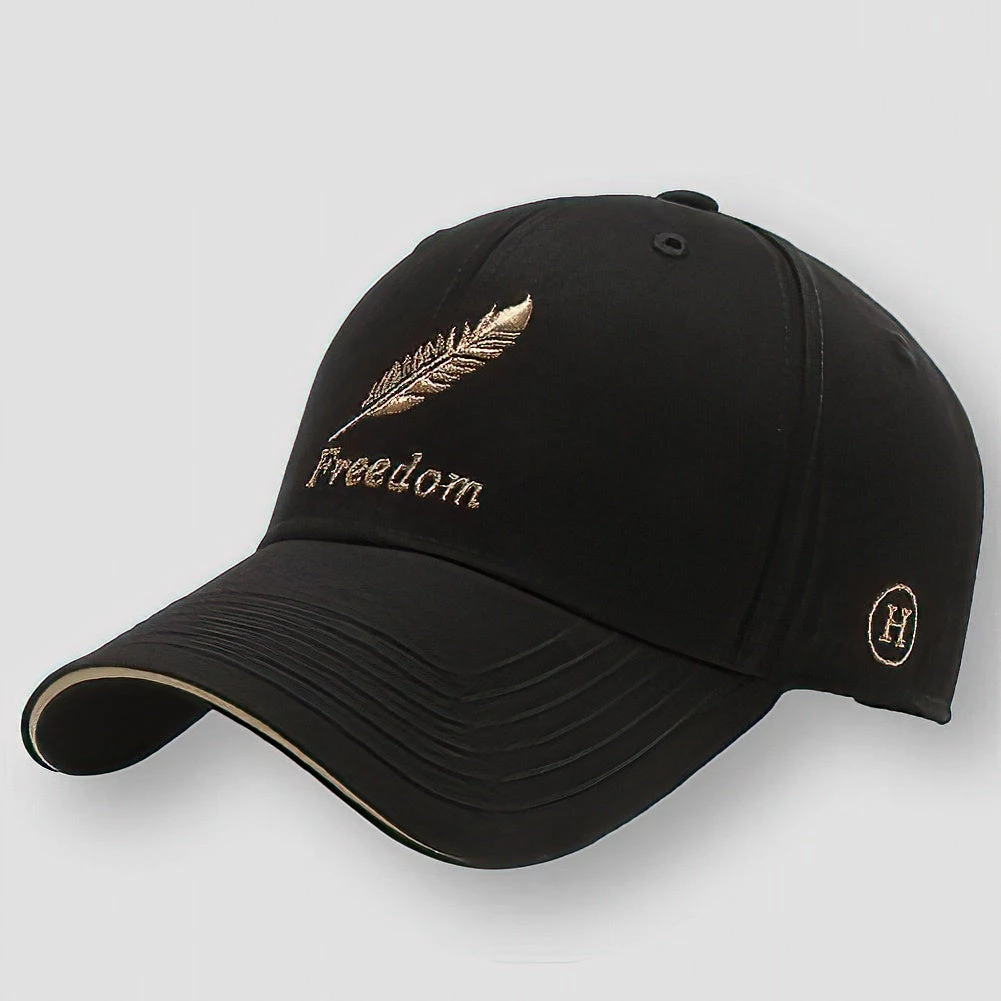A feather and “freedom” embroidery lend a stylish statement to this charming baseball cap. Imagined in highly-breathable cotton, it keeps you fresh and cool while providing excellent protection from the elements.