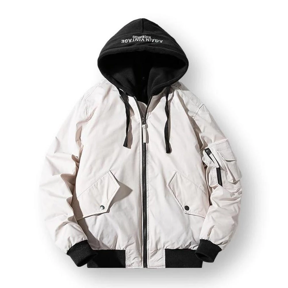 An oversized fit brings a street-ready appeal to this pilot jacket. Made from a lightweight, yet warm blend, this jacket boasts asymmetrical side pockets, a zip-up front, cuffed sleeves, and a hooded collar for added protection against the elements.