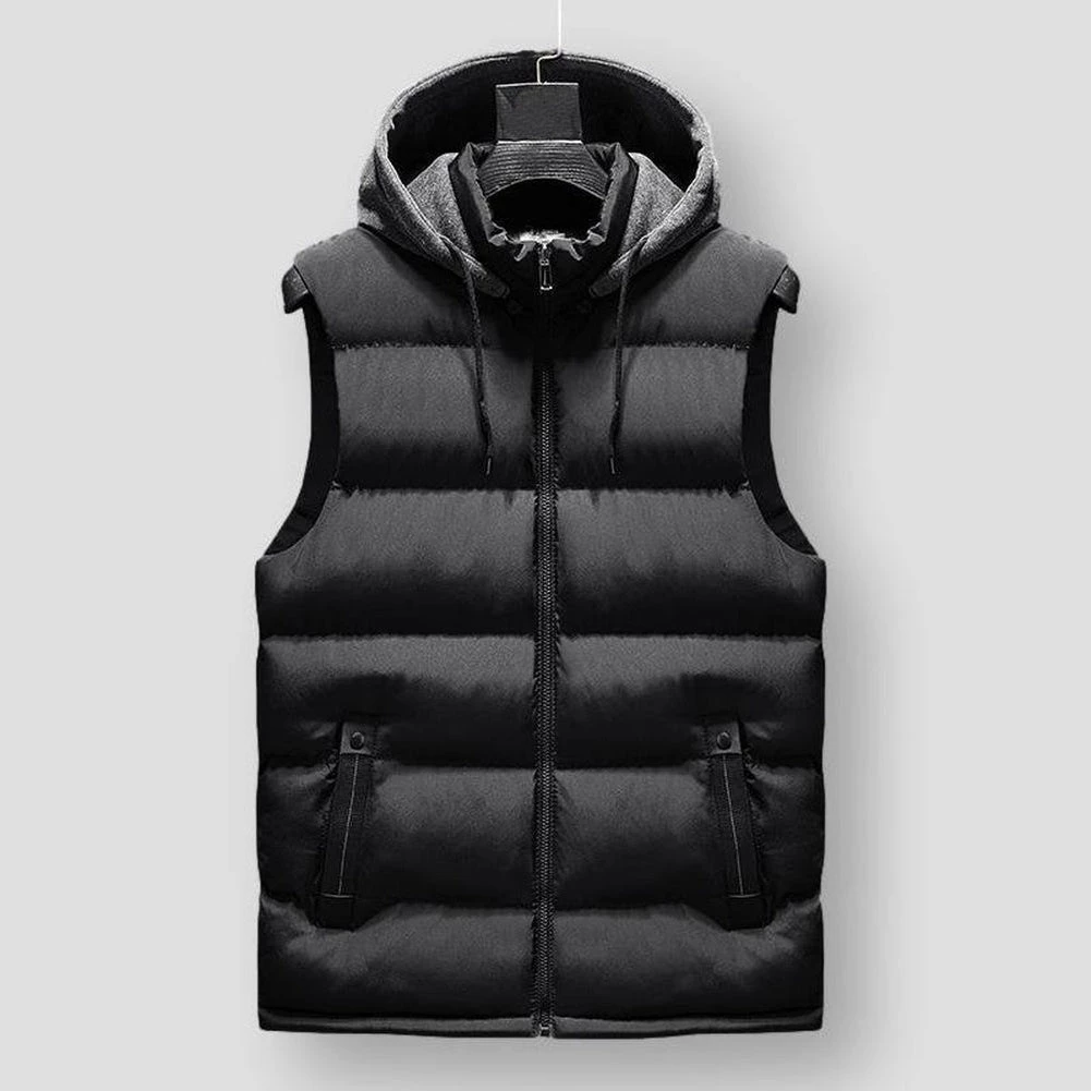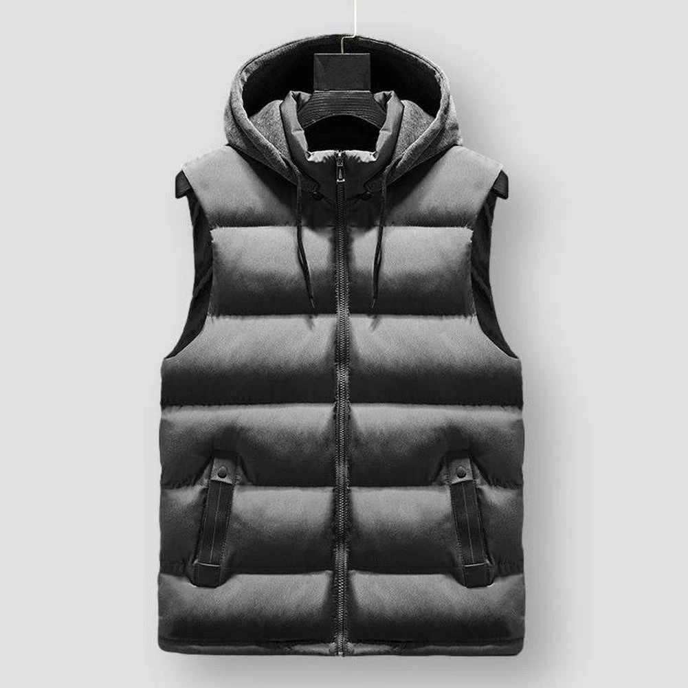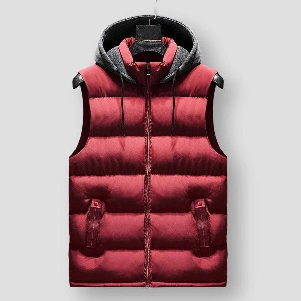The perfect mid-layer piece for between-the-seasons styling. Cut in a slim fit, this handsome vest boasts a slim fit with soft filling and a hood for added protection. Team up with a hoodie and jeans for a laid-back vibe.