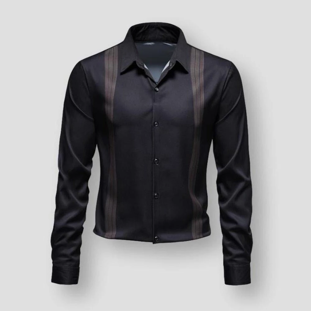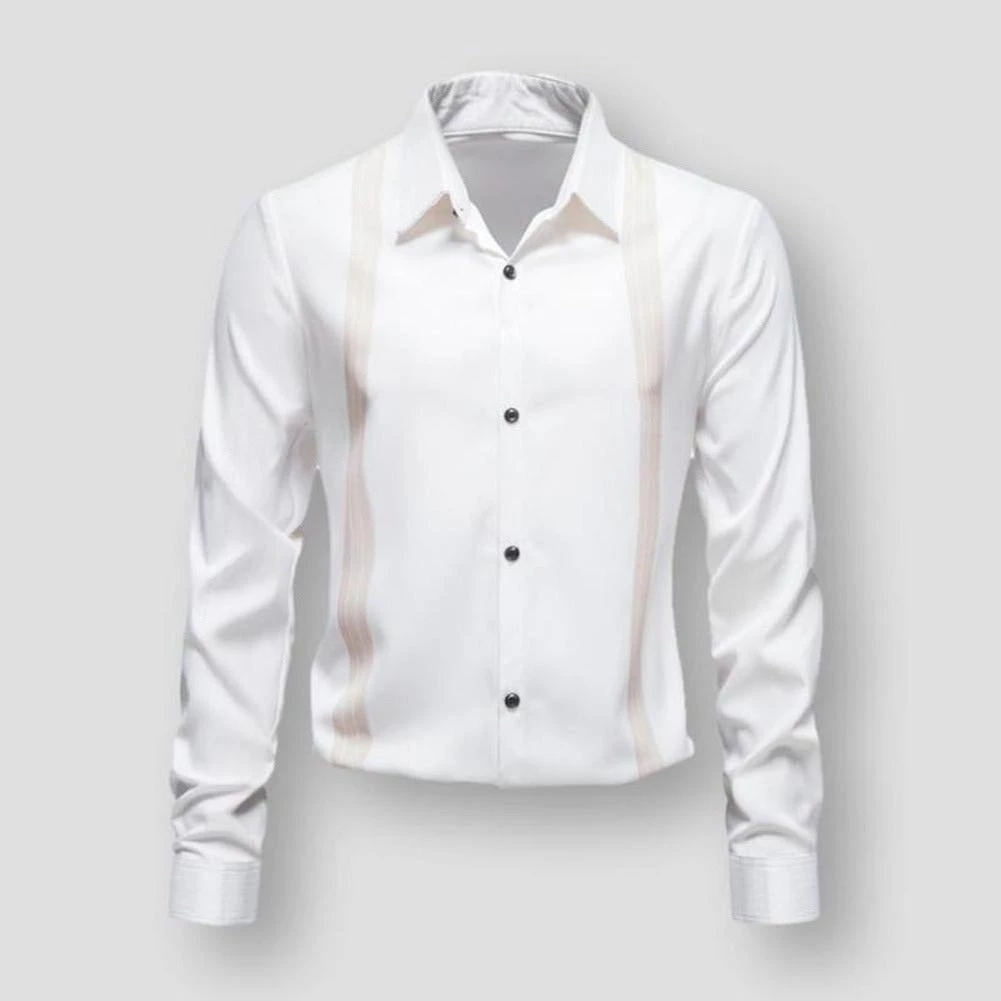 Signature wrinkle-resistant blend delivers an all-day neat look in this handsome dress shirt. Cut in a slim fit and adorned with vertical stripes on each side, this shirt pairs well with tailored pants and a sleek blazer for a glam night out in town.