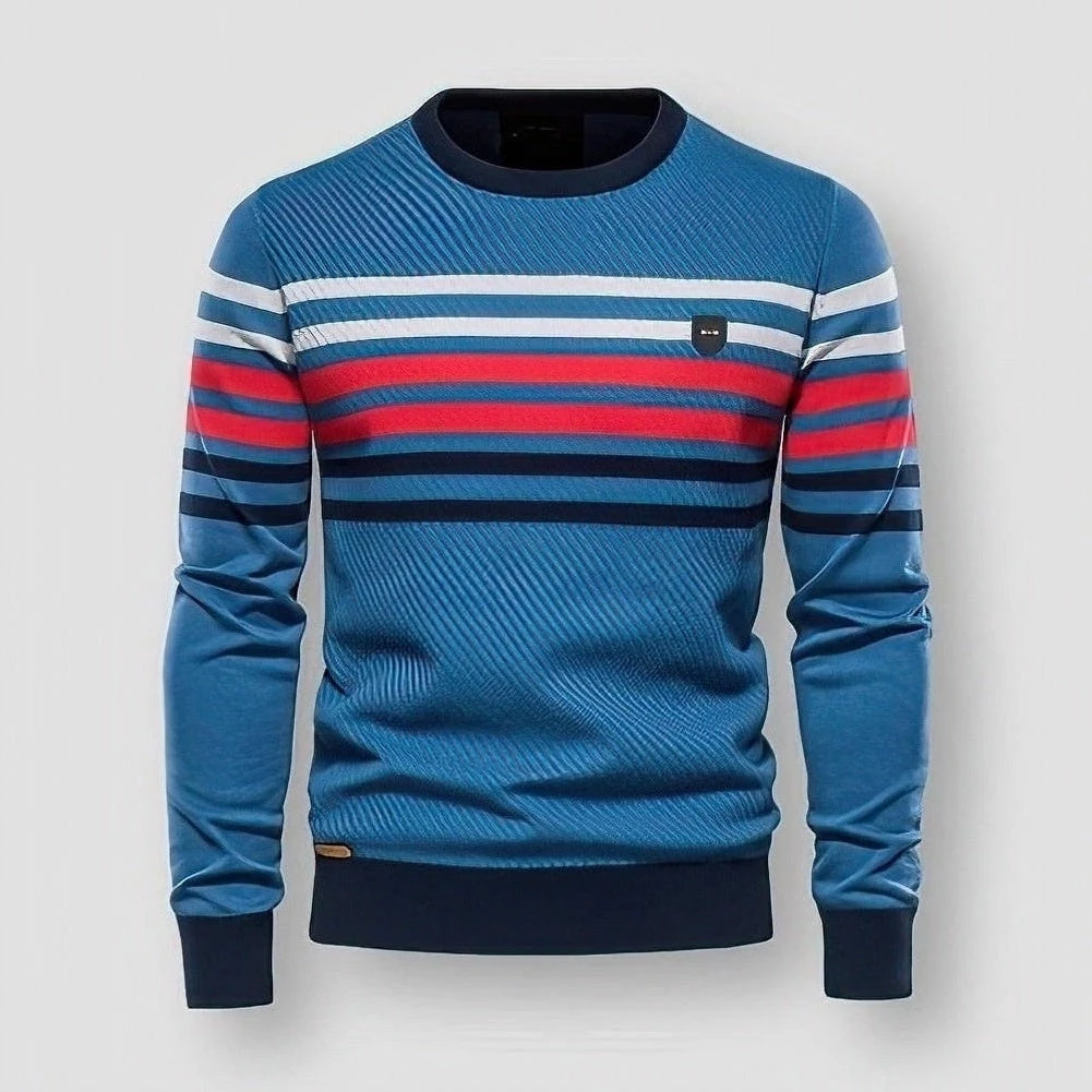 Add a pop of color to the daily winter pursuit with this stylish knitted pullover. Made from a soft cotton-rich blend for easy comfort, this handsome pullover is a versatile addition to your cold-season repertoire.