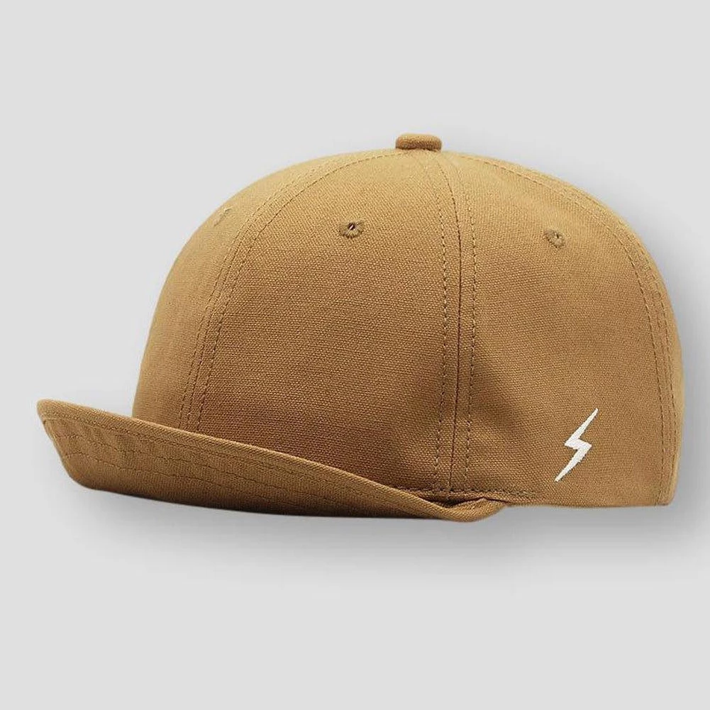 Short brim and a lightning bolt detail elevate this snapback hat with a modern appeal. Made from breathable cotton, it features neutral hues that pair easily with your daily line-up. Perfect for hiking, strolling, or anything in between.Â