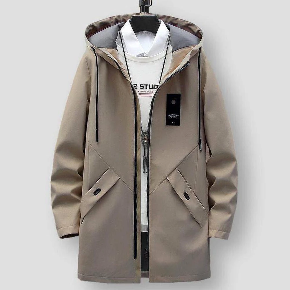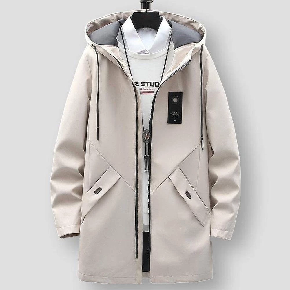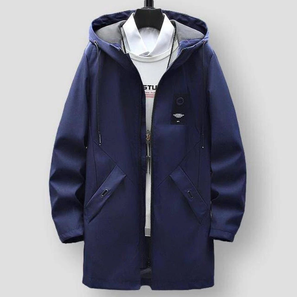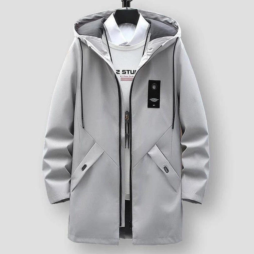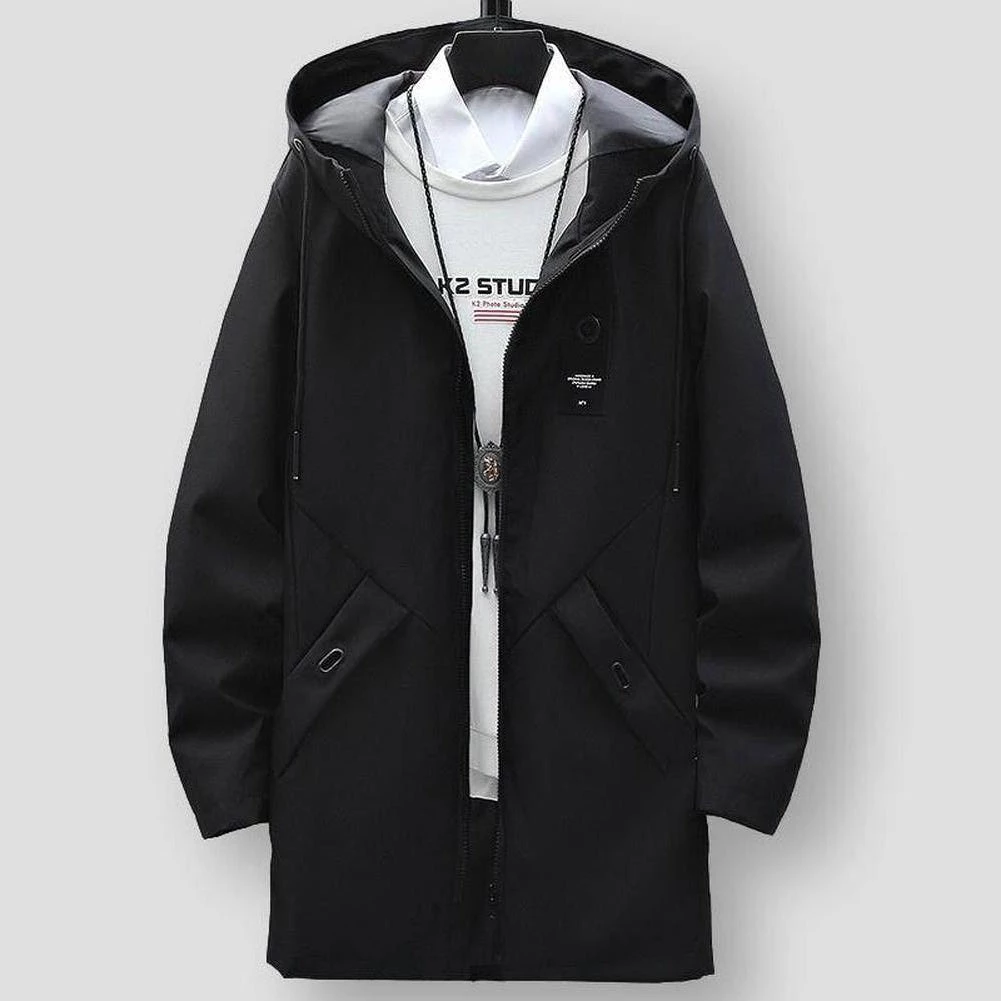 Minimalistic design with asymmetrical pockets elevates this jacket with a modern appeal. Cut in a long silhouette, it features a large hood with adjustable drawcords, side pockets, and a zip-up front. Team up with jeans or cargo pants for a street-ready vibe.