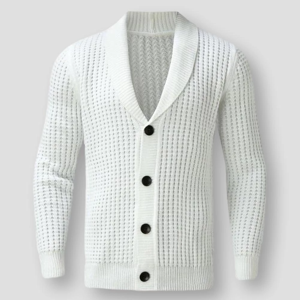 A stylish shawl collar lends preppy appeal to this handsome cardigan. Made from a luxuriously soft wool-kissed blend, this timeless piece boasts a button front and layers effortlessly over cashmere turtlenecks for a refined everyday look.