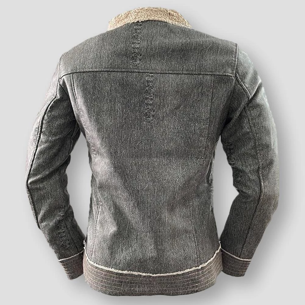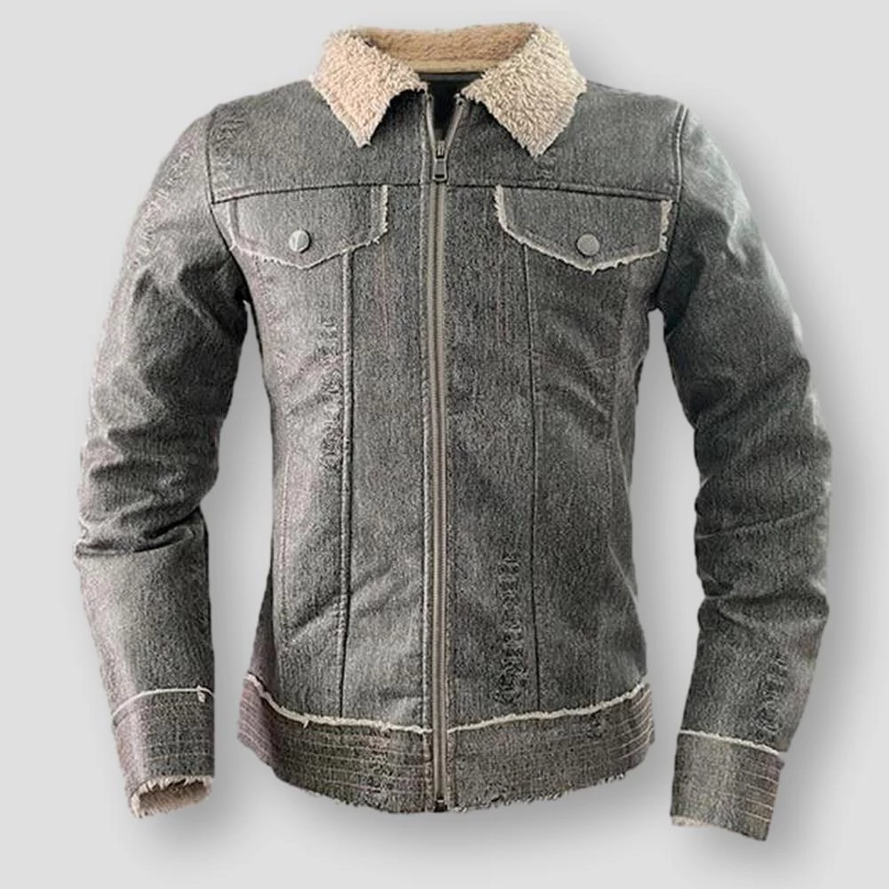 This structured jacket elevates the everyday pursuit with an edgy appeal. Cut in a slim fit from premium denim, this jacket boasts a soft fleece lining that provides a pleasant warmth when temperatures drop. Completed with two chest pockets and an inside slip one for storing small essentials close at hand.