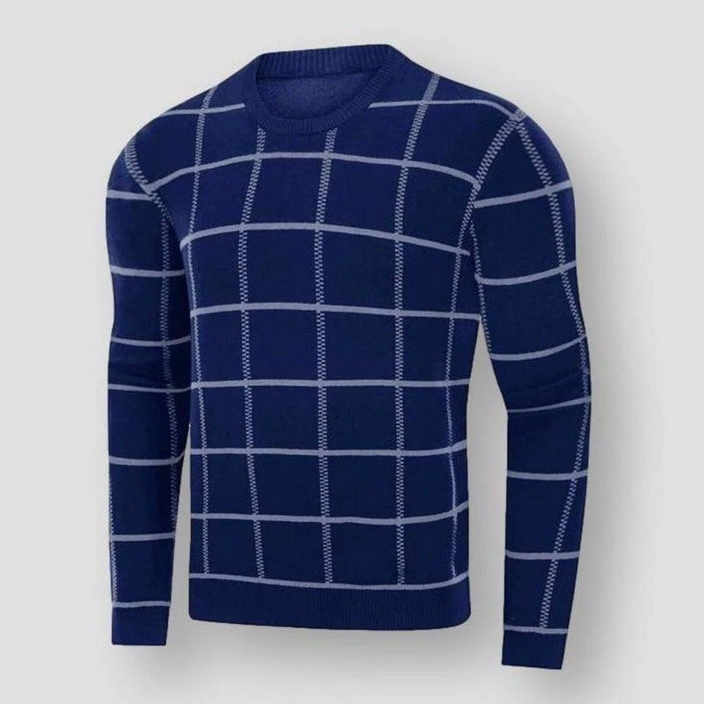 A wide plaid pattern adorns this sweater with a modern appeal. Knitted from a high-quality cotton-enriched blend for unbeatable warmth, this sweater features a regular fit that’s easy to layer on cooler days.Â
