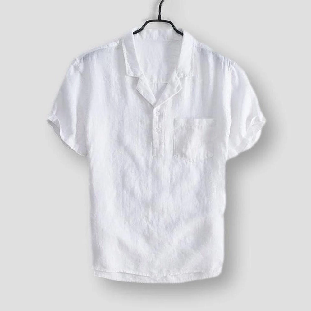 Crisp linen and soft cotton lend irresistible comfort to this handsome shirt. Cut in a relaxed fit that’s always casual and best left untucked, it features a solid-color design that blends easily with your entire warm-weather portfolio.