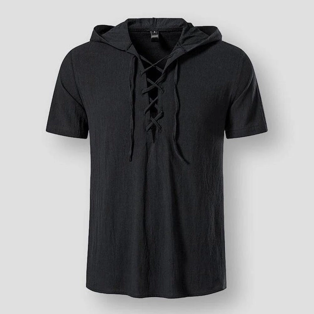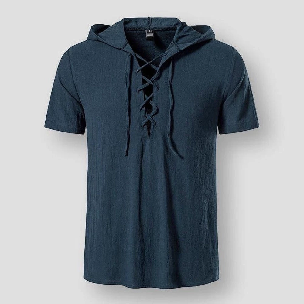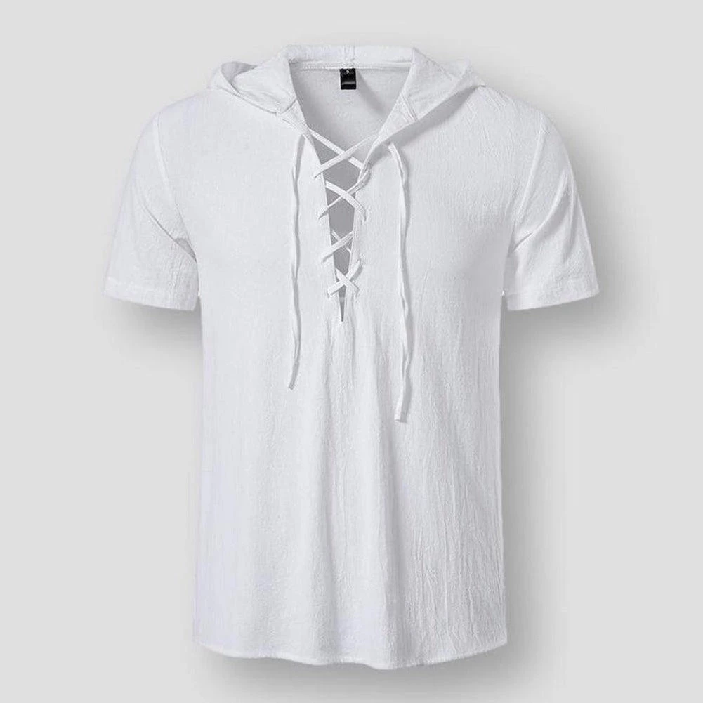 Fusing soft cotton and crisp linen to provide unbeatable all-day comfort. Cut in a relaxed fit, this t-shirt boasts a stylish lace-up collar and a hood, and pairs seamlessly with linen shorts or chinos. Perfect for a sunset stroll on the beach or a casual seaside dinner date.