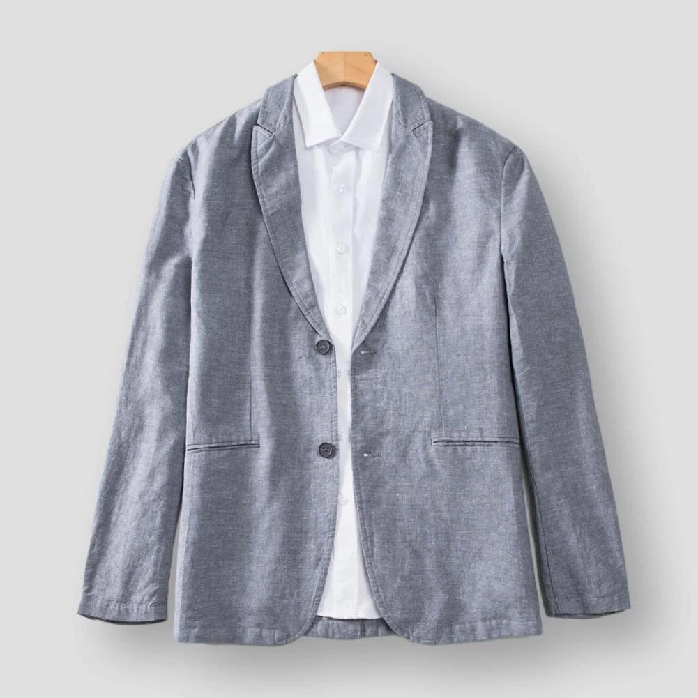 Step up the smart-casual game with this dashing linen blazer. Cut in a relaxed, yet structured fit, it showcases a button front with side pockets that lend a laid-back vibe to the overall design. Layer over a casual shirt for an elevated look and feel.