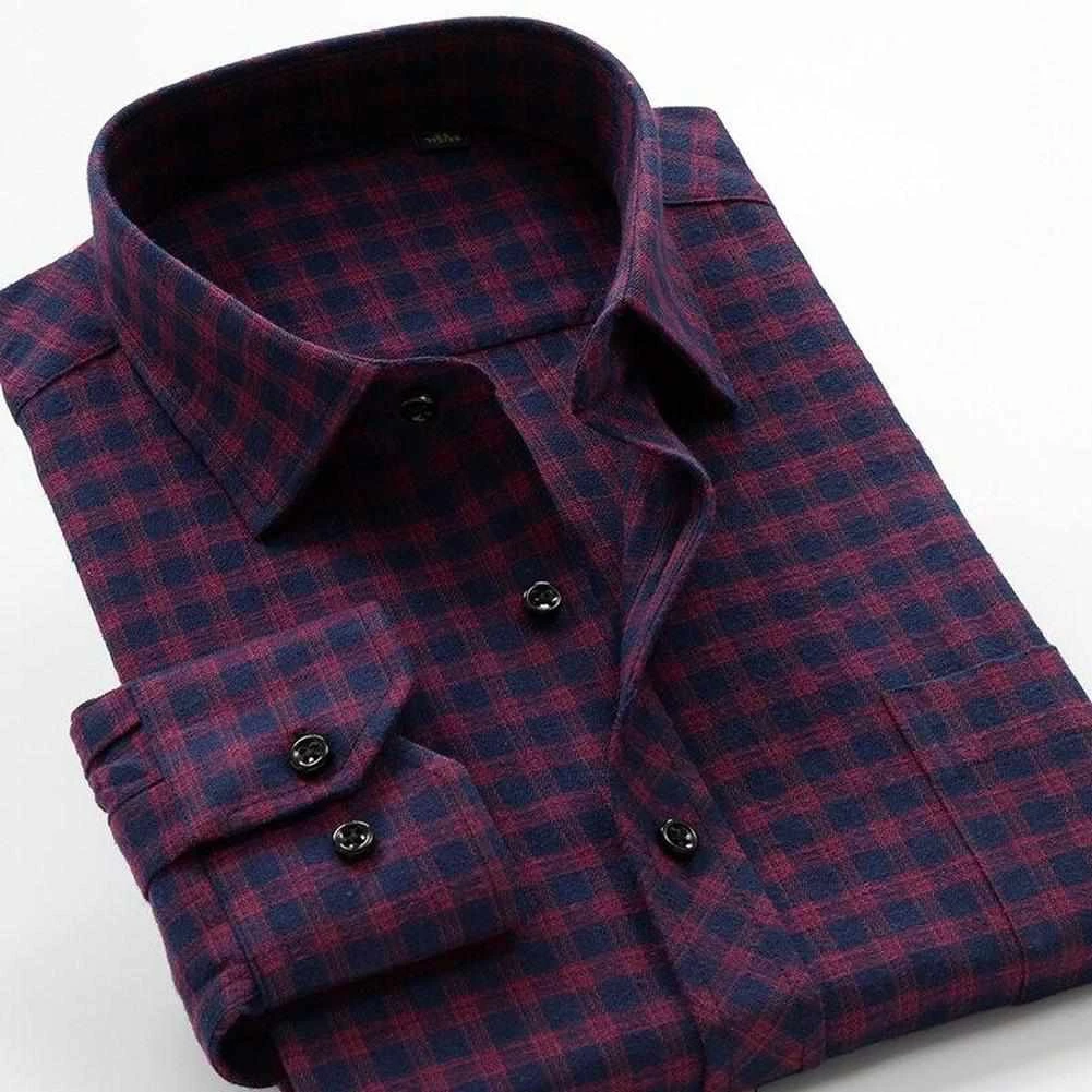 Flattering silhouette meets versatile print in this TimberPlaid shirt. Beautifully crafted from breathable cotton/polyester blend, it boasts a turn-down collar and button-down closure that easily puts together both casual or business edits alike.Â