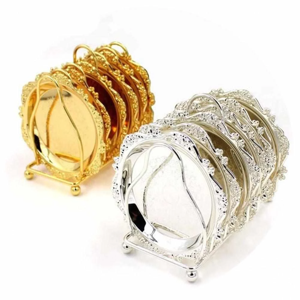 Vintage aesthetics meets exquisite craftsmanship in this gorgeous coaster set. Imagined in premium zinc alloy, this set of 6 delicately crafted coasters radiates with sophisticated vibes, elevating the cocktail hour and entertaining. Perfect for formal dinner parties and celebrations.