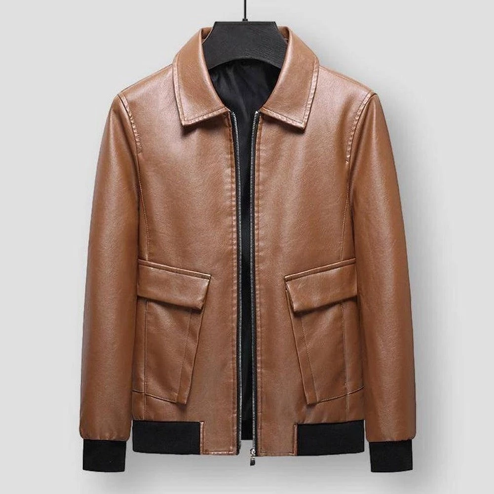 Infuse a statement touch into the everyday line-up with this handsome jacket. Imagined in premium crafted leather, it features a relaxed fit with a zipper front and ribbed cuffs for added warmth. On the site, large pockets provide enough storage for small daily essentials.