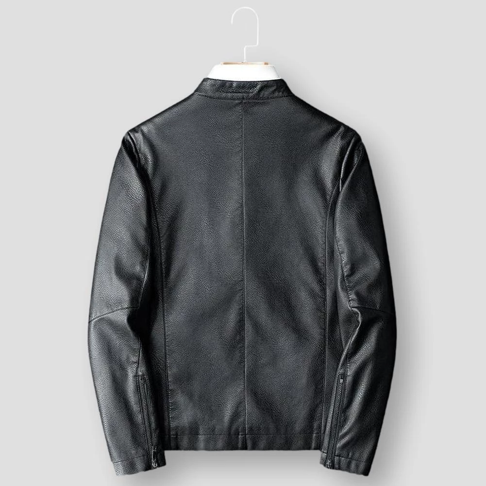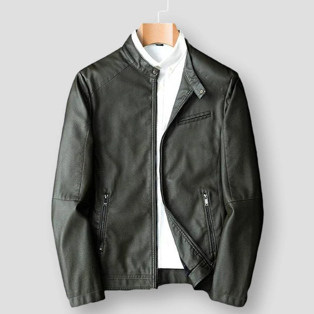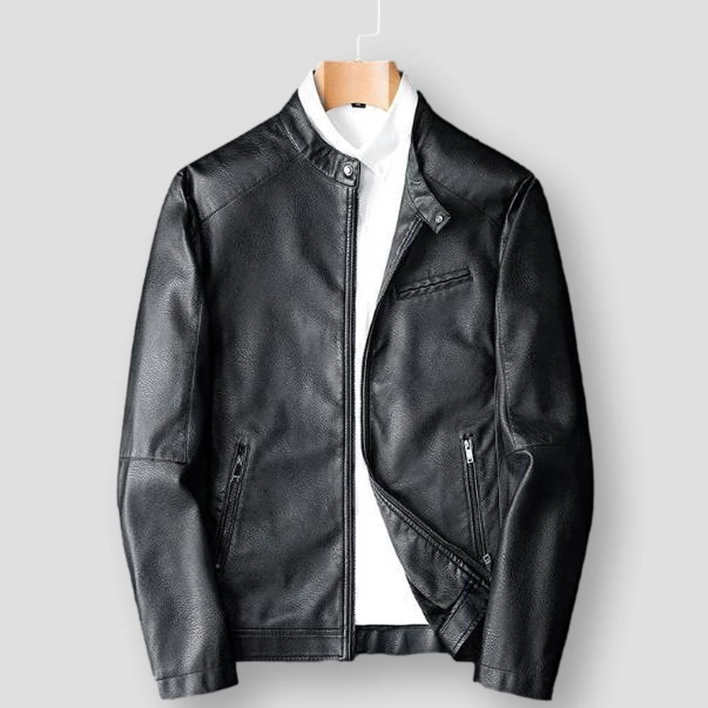 Sleek and sporty, this jacket lends an edgy touch to off-duty ensembles. Imagined in a premium crafted leather, this slim silhouette features a zip-up front, stand collar, and secure pockets that store essentials close at hand. Team up with leather pants or denim jeans for a head-turning edit.