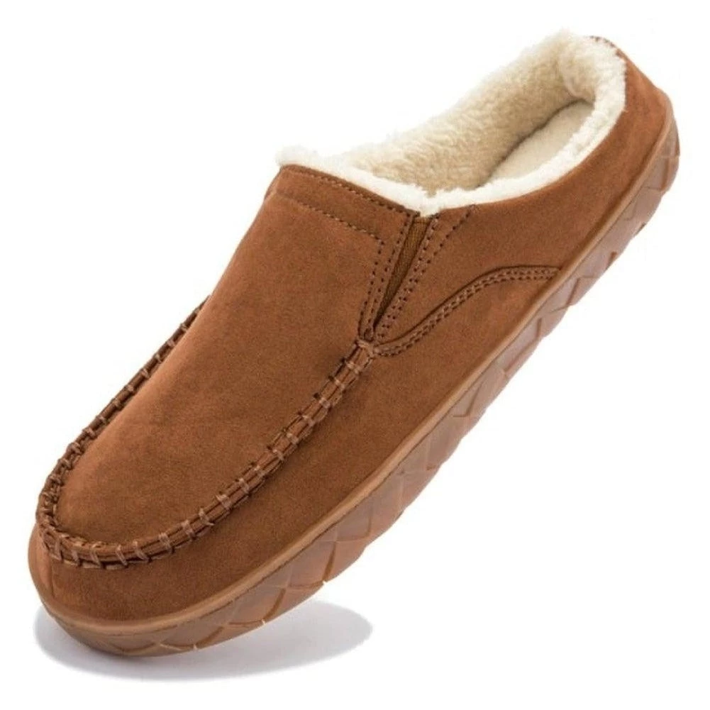 Soft plush lining brings easy comfort to these charming slippers. Complete with anti-skid rubber soles for easy indoor-outdoor use, this pair is the ultimate winter a-home addition.