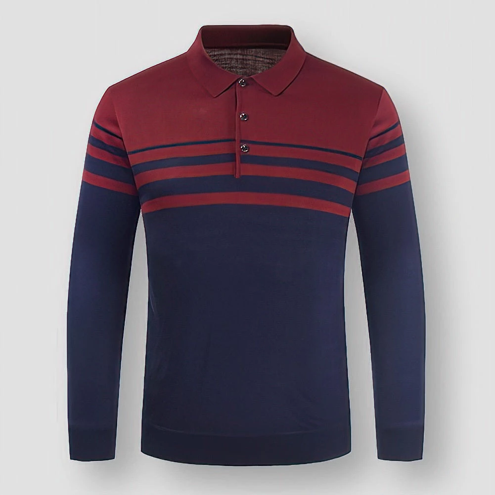 Contrasting striped embolden this handsome polo shirt designed for maximum comfort and versatility. Imagined in a stretch-infused soft blend, it keeps you cozy and stylish on chilly days and pairs easily with any casual bottom in your closet.