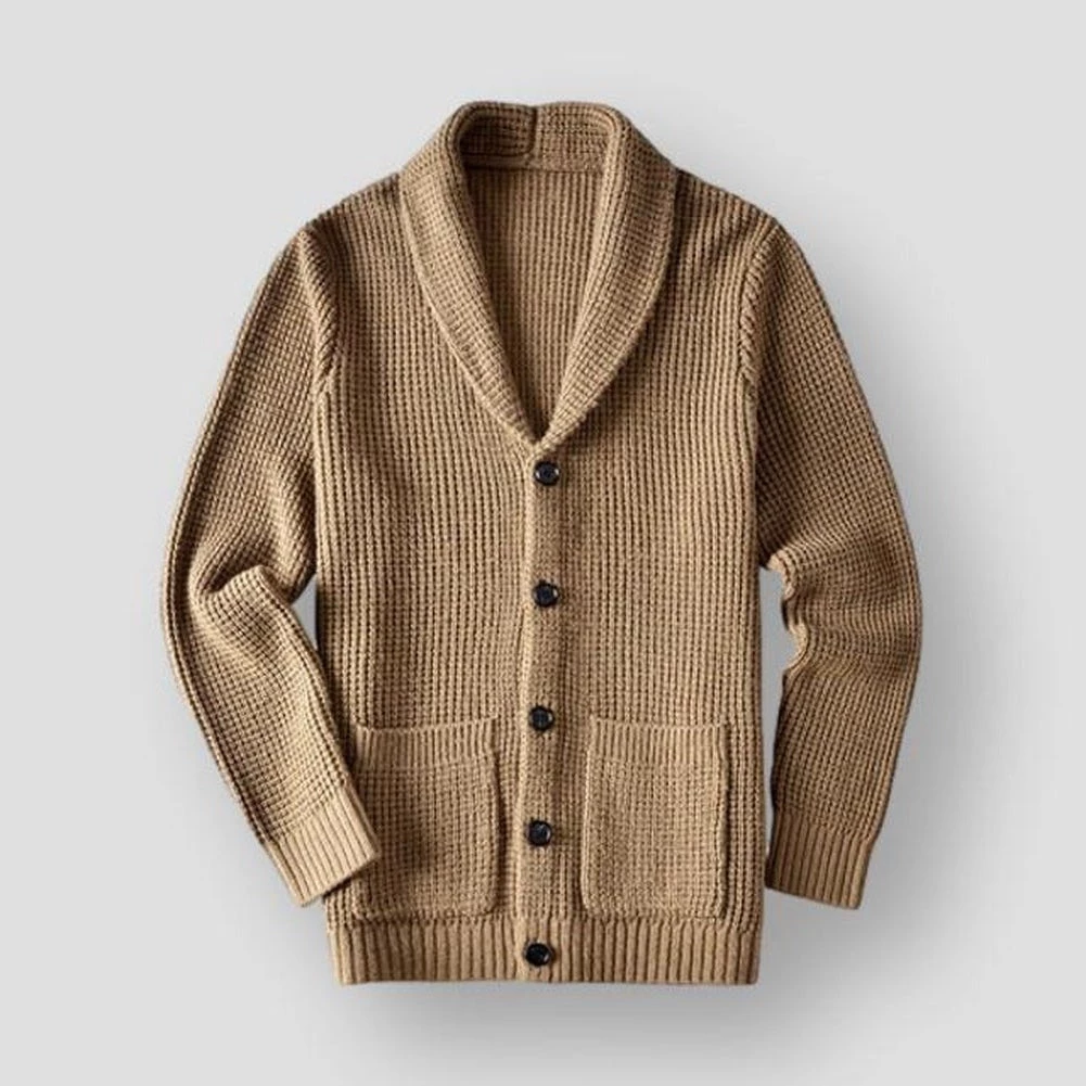 A stylish shawl collar lends a timeless appeal to this handsome cardigan. Made from a cozy wool-kissed blend, it feels super pleasant and layers easily over smart-casual shirts. Complete with a neat button-up front and two side pockets.